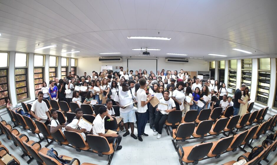 Mais de 180 alunos do Programa Poupança Escola da Prefeitura de Niterói que participaram do projeto “Quem Sabe de Mim Sou Eu: cidadania, protagonismo, autonomia e inclusão produtiva de jovens em vulnerabilidade social” receberam, nesta segunda-feira (1º), os certificados de conclusão da imersão.